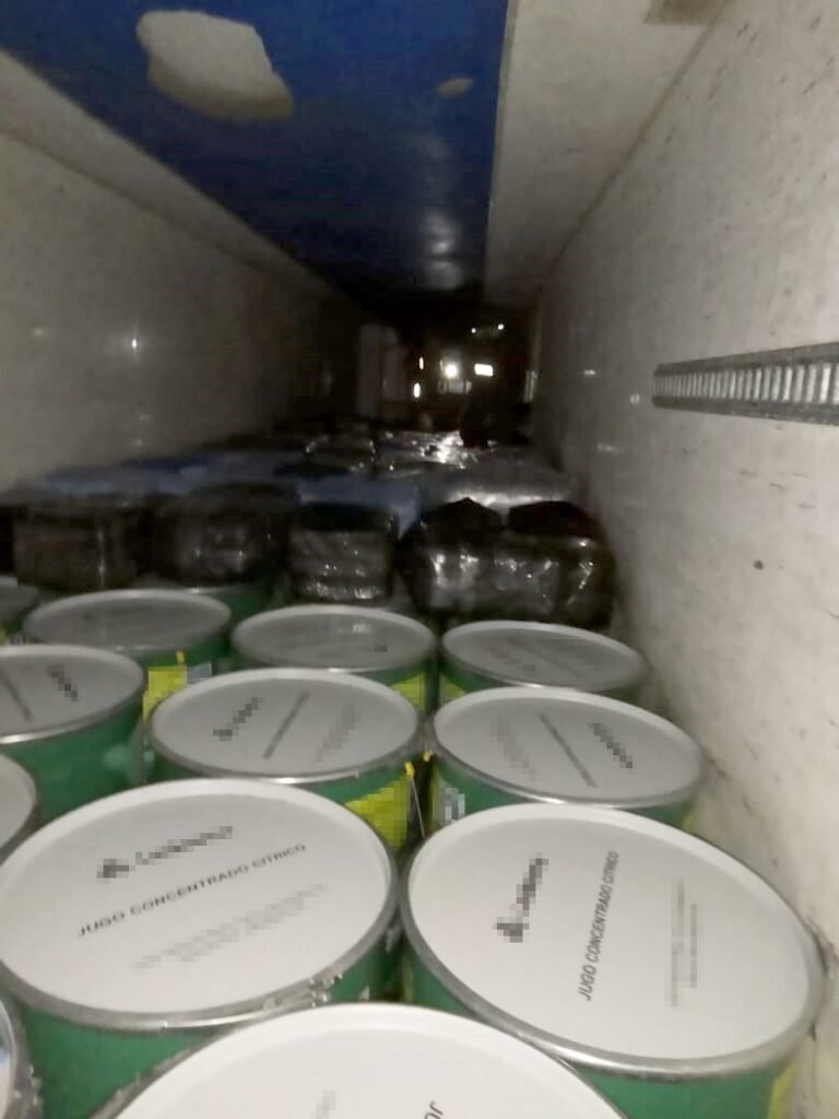Al realizar el registro físico y documentológico del camión, en presencia de testigos, los gendarmes constataron la existencia 84 tambores que contenían 200 litros (cada uno) de jugo concentrado de limón y detrás de este cargamento había oculto 61 bultos de grandes dimensiones con hojas de coca.