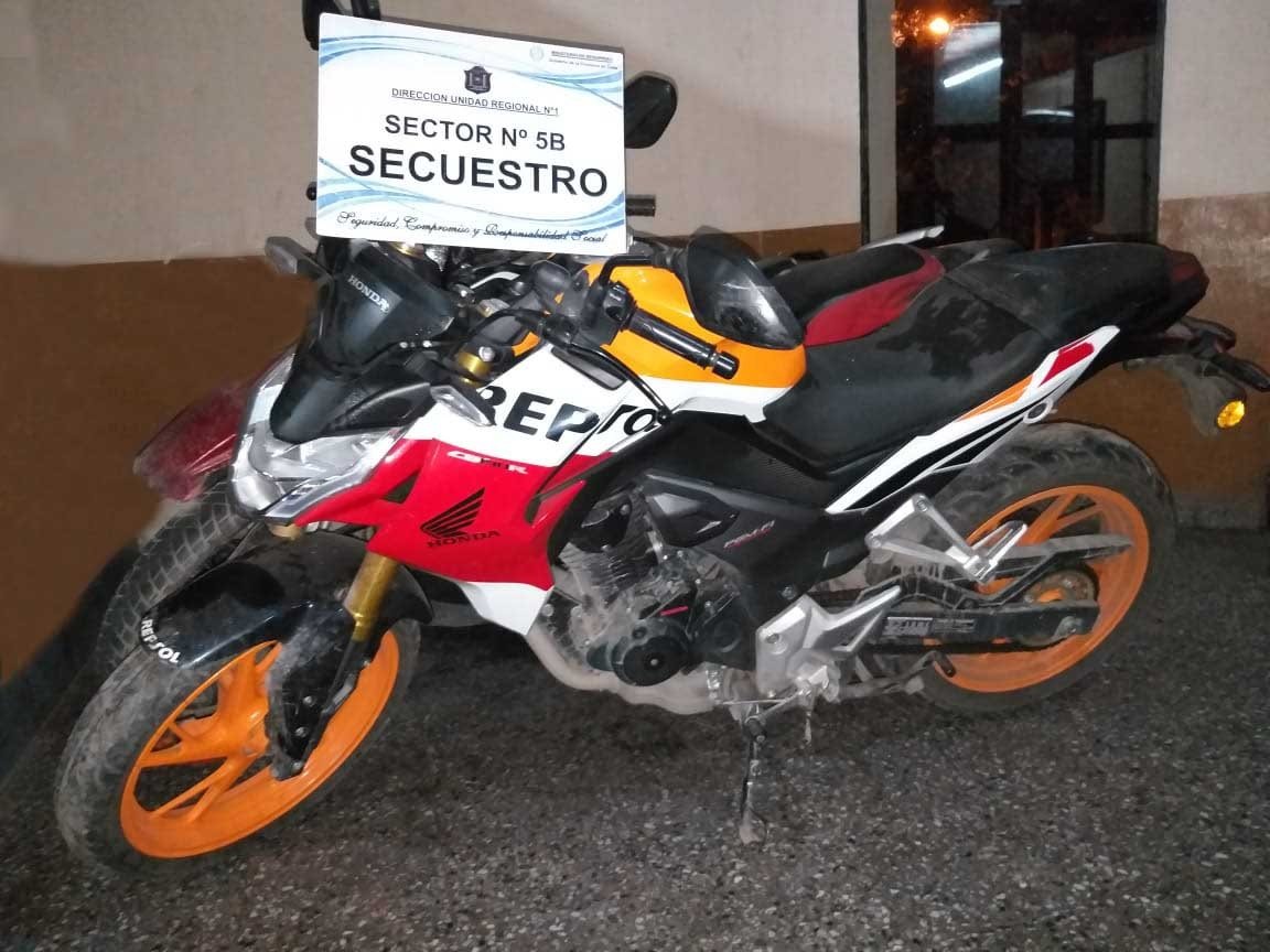 La primera moto recuperada se dió en avenida Constituyente y pasaje Islas Malvinas de la ciudad de Orán, donde una patrulla de la Sección Motoristas de Emergencias Policiales al realizar un control a un motociclista de 19 años verifica que no poseía la documentación del rodado. A través de la Sección Tratamiento Preventivo de la Información comprobaron que la propietaria del rodado había radicado denuncia por robo en la Brigada de Investigaciones N°4.