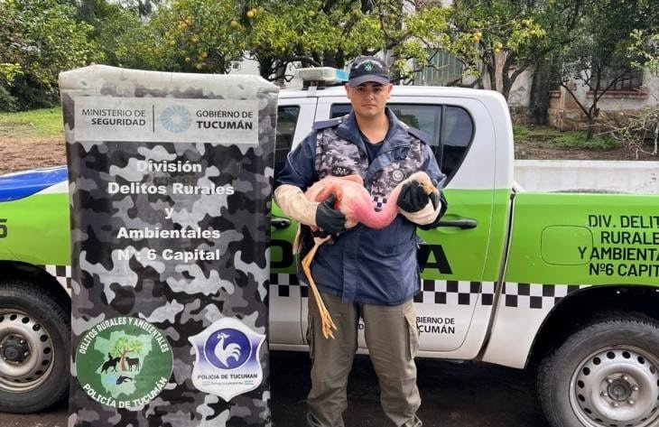 Efectivos policiales de la División Delitos Rurales y Ambientales de la capital tucumana rescataron un ejemplar de Flamenco conocido también como Phoenicopterus. El hecho ocurrió en la localidad de La Florida, distante a 20 kms al este de la capital.