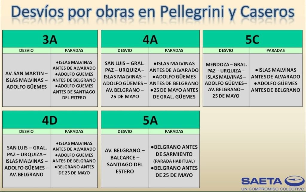 SAETA anunció cambios de recorridos por obras y mal estado en diversas calles