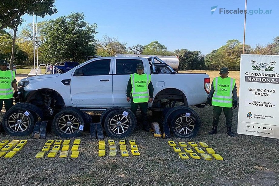 La auxiliar fiscal refirió que, en ese contexto, los gendarmes advirtieron que los neumáticos presentaban poca carga de aire, lo cual terminó de establecer el estado de sospecha. En esta instancia, la fiscalía dispuso una requisa más profunda, que se concretó en la base operativa del escuadrón, en la ciudad de Joaquín V. González.