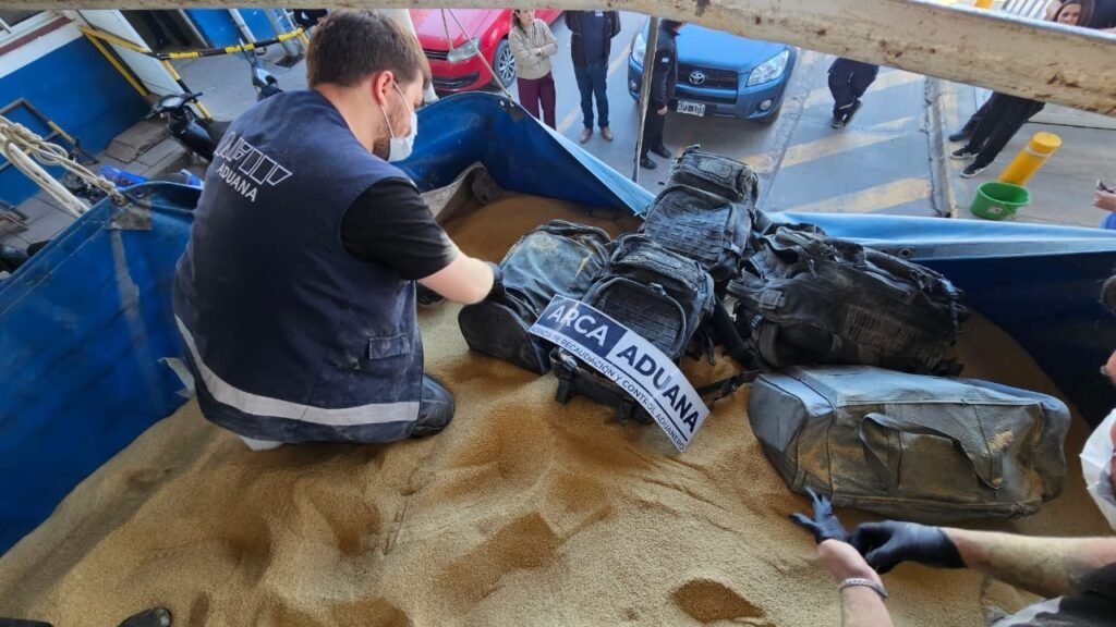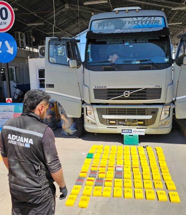 Durante un control vehicular llevado a cabo en el Puente Internacional Salvador Mazza – Yacuiba, agentes especializados de la Dirección General de Aduanas secuestraron cerca de 88 kilogramos de cocaína ocultos en una carga internacional de harina de soja. El hallazgo fue posible gracias al uso de un escáner de camiones, que reveló imágenes anómalas en el interior de la mercadería.