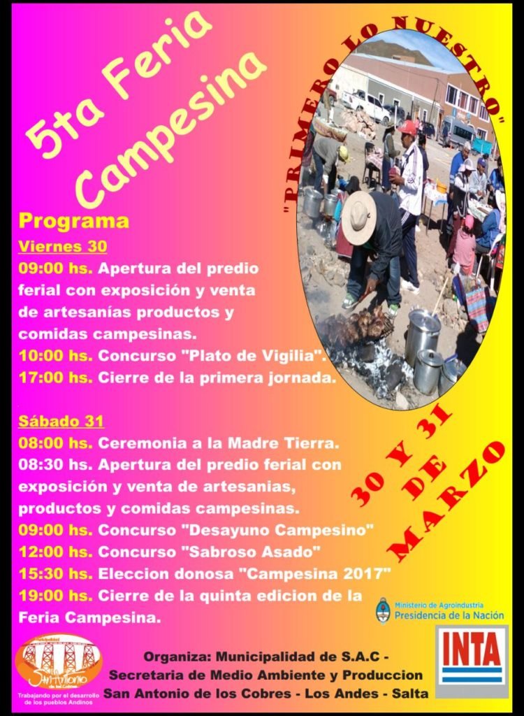 La Hora de SaltaInteriorSan Antonio de los CobresSan Antonio de Los Cobres realiza su Feria campesina San Antonio de Los Cobres realiza su Feria campesina 29/03/2018 Más sobre: San Antonio de los Cobres. Redes Sociales El gobernador Urtubey recibió a los primeros turistas del fin de semana largo por Semana Santa La Poma: 4ta Feria artesanal y gatronómica Noticias relacionadas Transportaban más de 360 kilos de marihuana a 3.775 metros de altura sobre el nivel del mar Salta: quedó habilitado el tránsito vehicular sobre RN 51 Advierten de la presencia de nieve sobre la calzada en RN 51 Tareas de conservación en RN 40 a la altura del Viaducto La Polvorilla en San Antonio de los Cobres Iban desde Salta a Buenos Aires con más de 64 kilos de cocaína Atención turistas, realizaron tares de conservación sobre la Ruta Nacional 51 Deja una respuesta Cancelar la respuestaTu dirección de correo electrónico no será publicada. Los campos obligatorios están marcados con * Guarda mi nombre, correo electrónico y web en este navegador para la próxima vez que comente. Subir