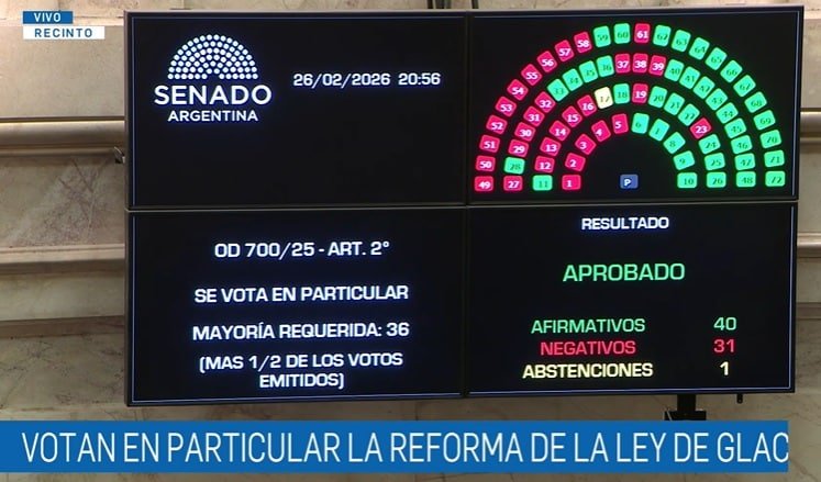 Senadores nacionales dieron media sanción a la Reforma de la Ley de Glaciares