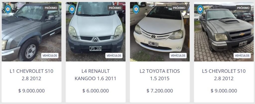 En esta primera etapa, se subastarán cinco vehículos: dos Chevrolet S10 (2012), un Toyota Etios (2015), un Citroën C3 (2017) y una Renault Kangoo (2011). Posteriormente, el proceso continuará con una segunda fase que incluirá la venta de otras cinco unidades oficiales.