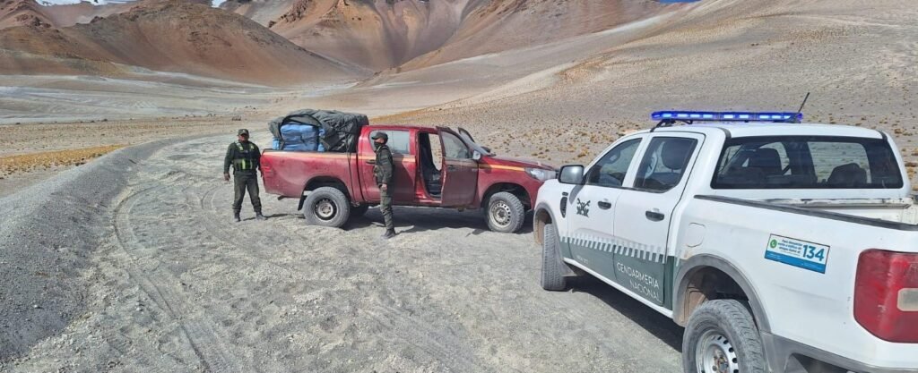 Posteriormente, mientras la patrulla se desplazaba hacia el Grupo “Socompa”, los funcionarios observaron un vehículo descendiendo por un camino interno de un proyecto minero abandonado.