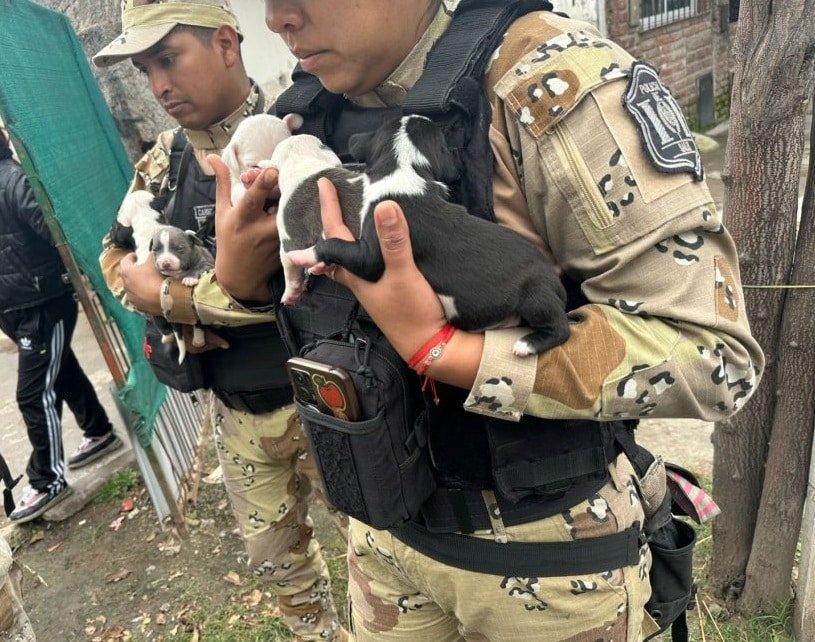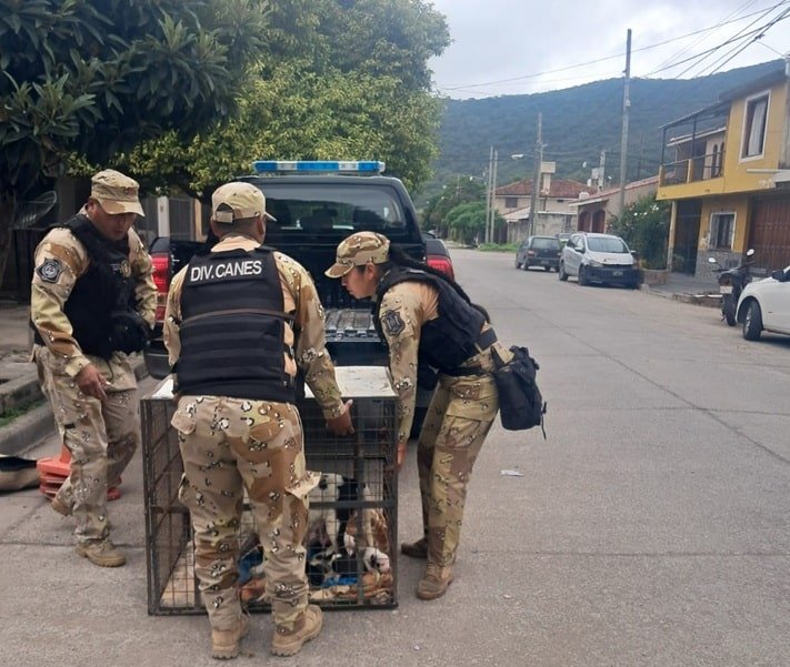 Policías de la División Canes, con la autorización de los propietarios, ingresó al domicilio ubicado en la zona norte y rescató a dos perros adultos (macho y hembra) y a ocho cachorros de 15 días, de raza pitbull.