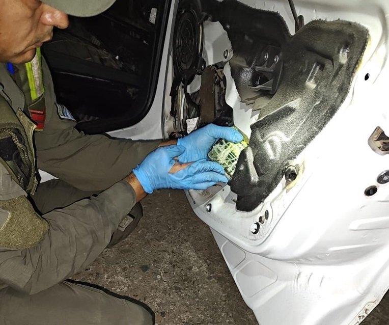 Al momento de la inspección, los funcionarios hallaron detras de la guantera un paquete amorfo envuelto con nylon. Ante ese hallazgo y con las altas probabilidades de estar frente a un hecho ilícito, los gendarmes realizaron una requisa minuciosa que culminó con el descubrimiento de 19 paquetes distribuidos detrás de la guantera (había confeccionado una especie de doble fondo), del baúl y detrás de los zócalos de las puertas.