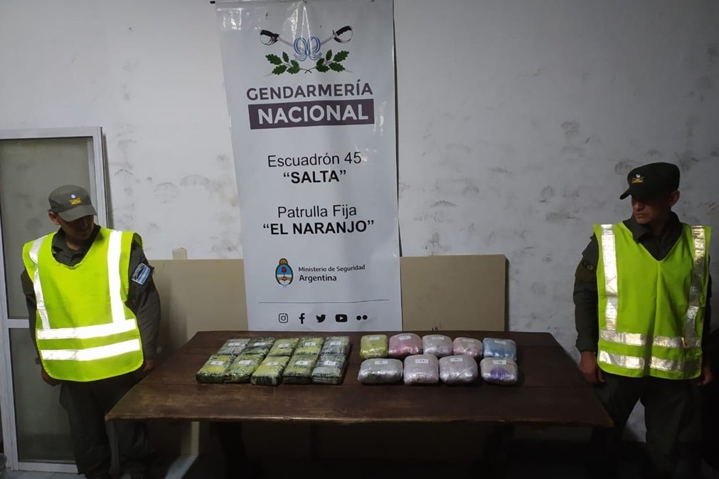En la noche del ultimo sabado, efectivos de gendarmería de la Patrulla Fija "El Naranjo" dependiente del Escuadrón 45 "Salta" desplegados sobre el kilómetro 1.435 de las Ruta Nacionales N° 9 y N° 34, le solicitaron a un automovil Peugeot 308, ocupado por dos personas, que detengan su marcha. Ambos provenian de la ciudad de Orán y tenian como destino la provincia de La Rioja.